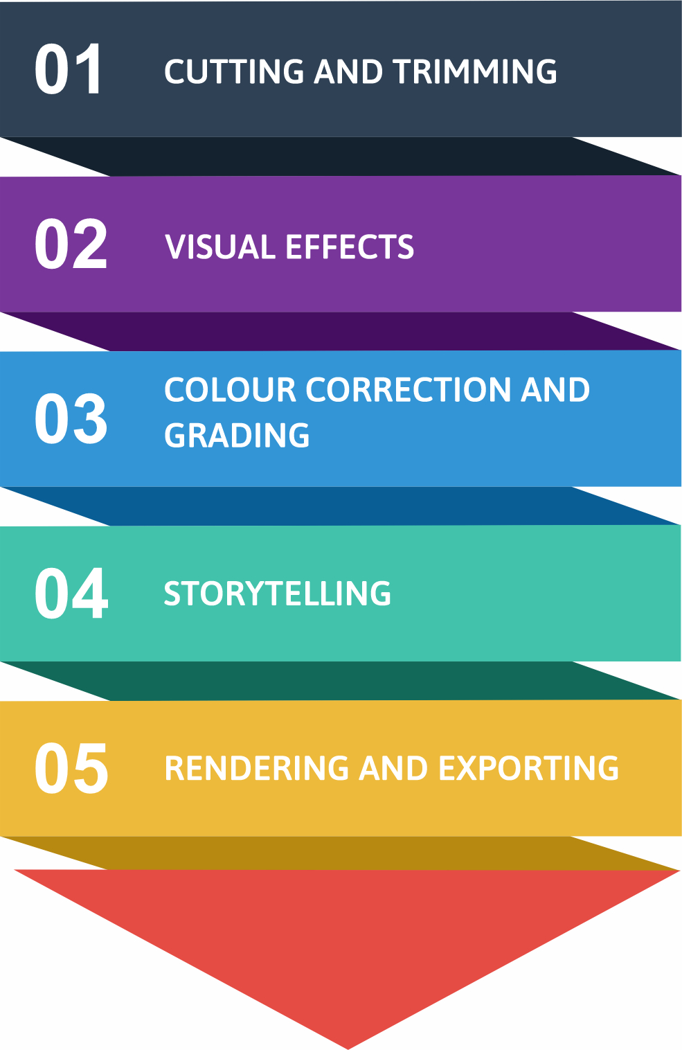 - Cutting and Trimming Removing unwanted segments, cutting scenes, and trimming clips to improve pacing and maintain viewer engagement.