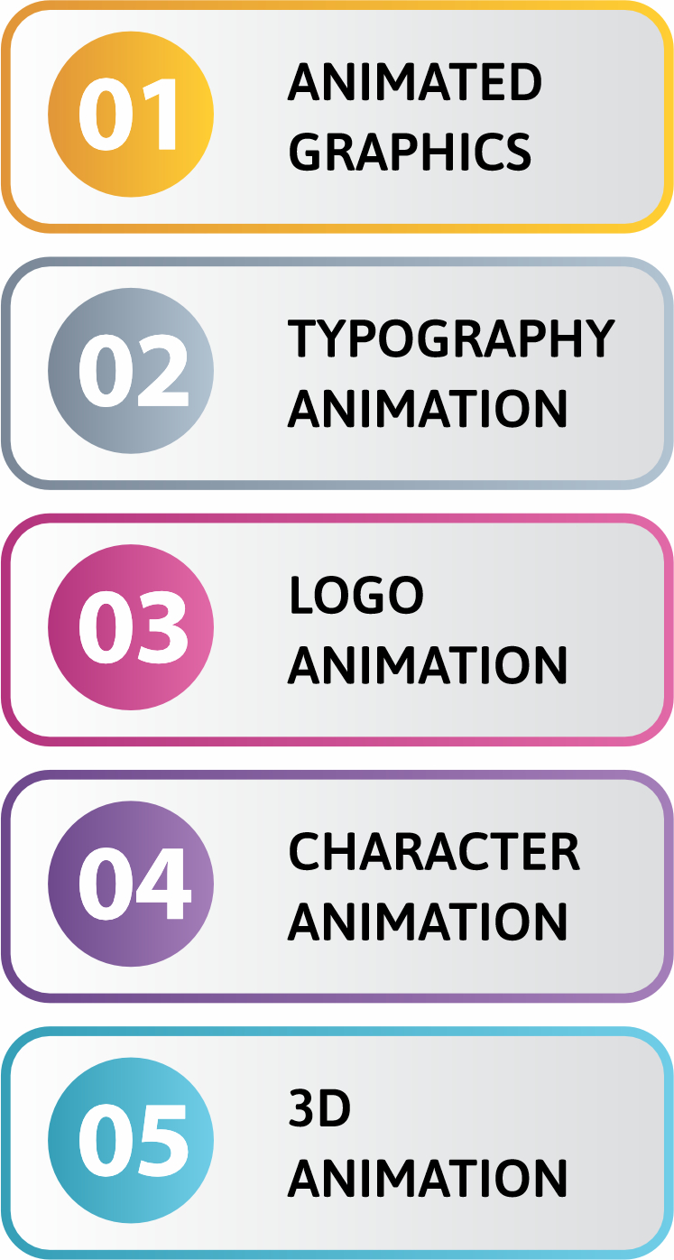 - Animated GraphicsCreating animated elements such as logos, text, icons, and illustrations to add movement and visual interest to a video or presentation.